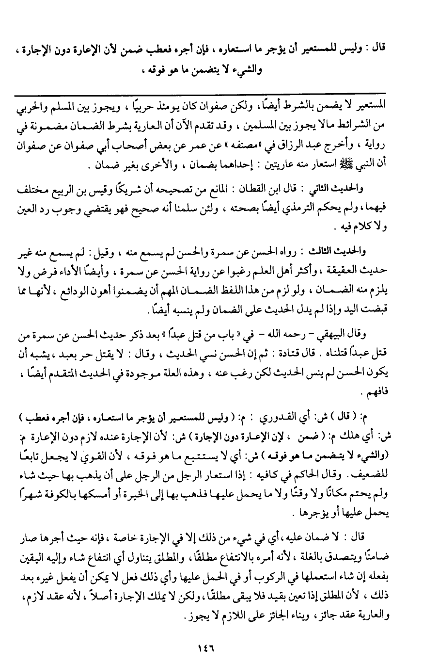 ـــــــــــــــــــــــــــــQالمستعير لا يضمن بالشرط أيضًا، ولكن صفوان كان يومئذ حربيًا، ويجوز بين المسلم والحربي من الشرائط ما لا يجوز بين المسلمين، وقد تقدم الآن أن العارية بشرط الضمان مضمونة في رواية، وأخرج عبد الرزاق في " مصنفه " عن عمر عن بعض أصحاب أبي صفوان «عن صفوان أن النبي - صَلَّى اللَّهُ عَلَيْهِ وَسَلَّمَ - استعار منه عاريتين: إحداهما بضمان، والأخرى بغير ضمان» .