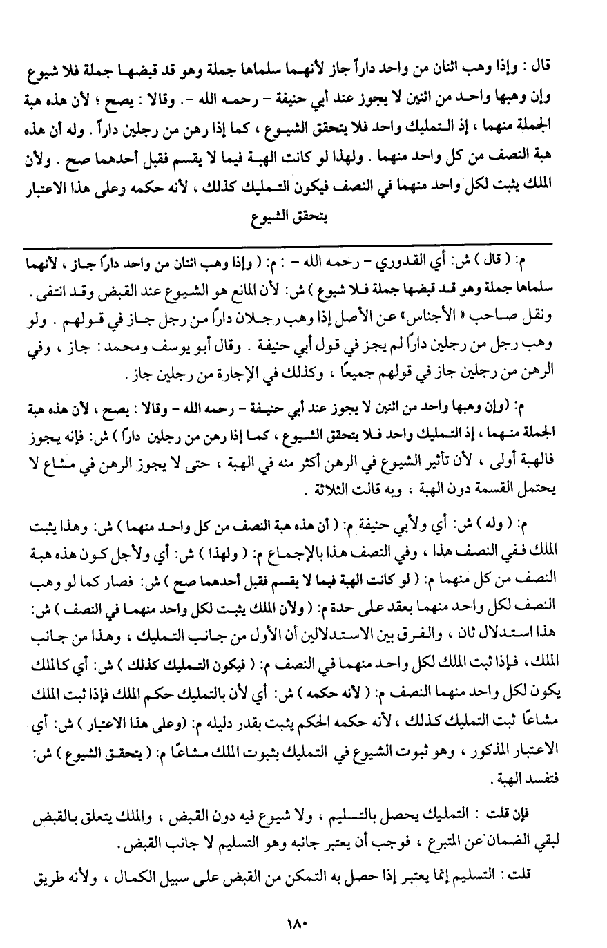 م: (وإن وهبها واحد من اثنين لا يجوز عند أبي حنيفة - رَحِمَهُ اللَّهُ - وقالا: يصح؛ لأن هذه هبة الجملة منهما، إذ التمليك واحد فلا يتحقق الشيوع، كما إذا رهن من رجلين دارا) ش: فإنه يجوز فالهبة أولى؛ لأن تأثير الشيوع في الرهن أكثر منه في الهبة، حتى لا يجوز الرهن في مشاع لا يحتمل القسمة دون الهبة، وبه قالت الثلاثة.