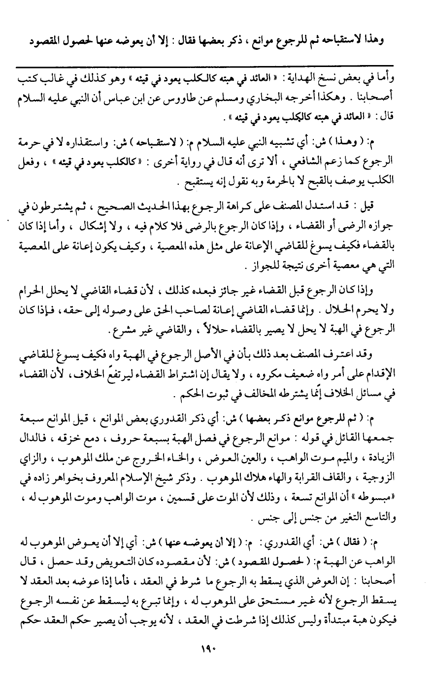 وهذا لاستقباحه ثم للرجوع موانع، ذكر بعضها فقال: إلا أن يعوضه عنها لحصول المقصود