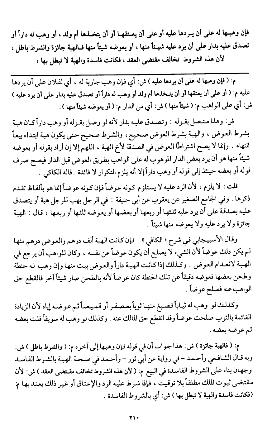 قلت: لا يلزم؛ لأن الرد عليه لا يستلزم كونه عوضا فإن كونه عوضا إنما هو بألفاظ تقدم ذكرها. وفي الجامع الصغير عن يعقوب عن أبي حنيفة: في الرجل يهب للرجل هبة أو يتصدق عليه بصدقة على أن يرد عليه ثلثها أو ربعها أو يعوضه ثلثها أو ربعها، قال: الهبة جائزة ولا يرد عليه ولا يعوضه منها شيئا.