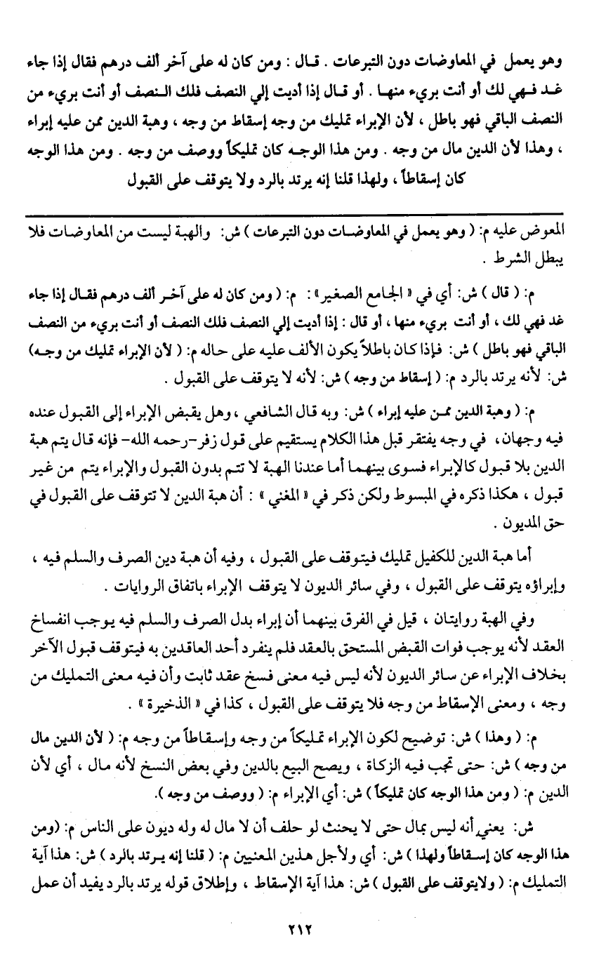 أما هبة الدين للكفيل تمليك فيتوقف على القبول، وفيه أن هبة دين الصرف والسلم فيه، وإبراؤه يتوقف على القبول، وفي سائر الديون لا يتوقف الإبراء باتفاق الروايات.