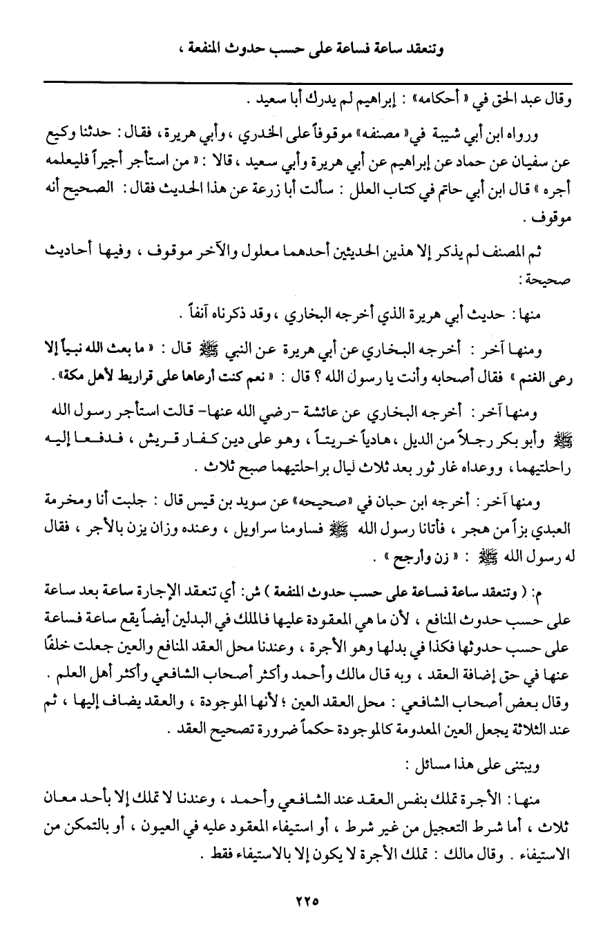 وتنعقد ساعة فساعة على حسب حدوث المنفعة،