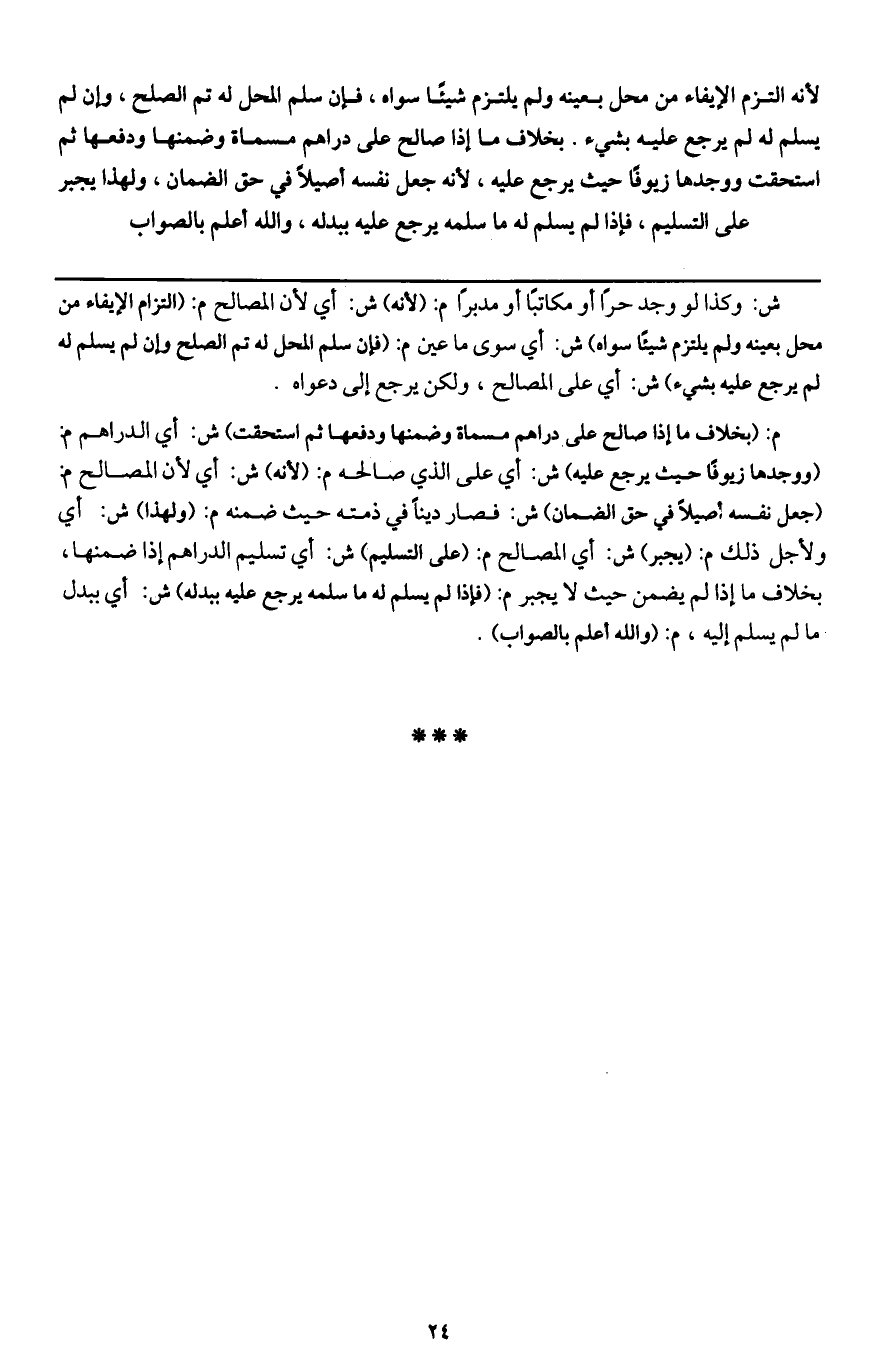 ـــــــــــــــــــــــــــــQش: وكذا لو وجد حرا أو مكاتبا أو مدبرا م: (لأنه) ش: أي لأن المصالح م: (التزام الإيفاء من محل بعينه ولم يلتزم شيئا سواه) ش: أي سوى ما عين م: (فإن سلم المحل له تم الصلح وإن لم يسلم له لم يرجع عليه بشيء) ش: أي على المصالح، ولكن يرجع إلى دعواه.