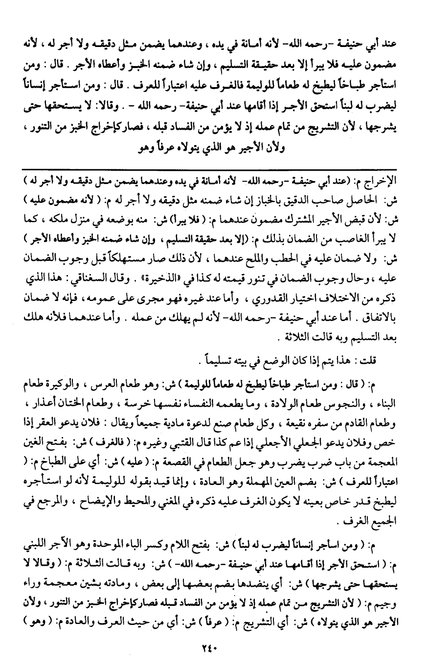 م: (قال: ومن استأجر طباخا ليطبخ له طعاما للوليمة) ش: وهو طعام العرس، والوكيرة طعام البناء، والنجوس طعام الولادة، وما يطعمه النفساء نفسها خرسة، وطعام الختان أعذار، وطعام القادم من سفره نقيعة، وكل طعام صنع لدعوة مادية جميعا ويقال: فلان يدعو العقر إذا خص وفلان يدعو الجعلي الأجعلي إذا عم كذا قال القتبي وغيره م: (فالغرف) ش: بفتح الغين المعجمة من باب ضرب يضرب وهو جعل الطعام في القصعة م: (عليه) ش: أي على الطباخ م: (اعتبارا للعرف) ش: بضم العين المهملة وهو العادة، وإنما قيد بقوله للوليمة؛ لأنه لو استأجره ليطبخ قدر خاص بعينه لا يكون الغرف عليه ذكره في المغني والمحيط والإيضاح، والمرجع في الجميع الغرف.