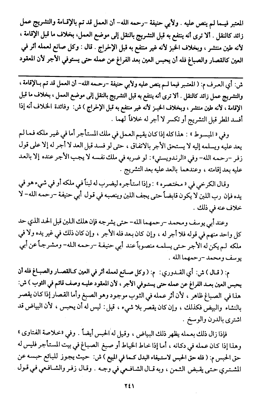 ـــــــــــــــــــــــــــــQش: أي العرف م: (المعتبر فيما لم ينص عليه ولأبي حنيفة - رَحِمَهُ اللَّهُ - أن العمل قد تم بالإقامة، والتشريج عمل زائد كالنقل. ألا ترى أنه ينتفع به قبل التشريج بالنقل إلى موضع العمل، بخلاف ما قبل الإقامة؛ لأنه طين منتشر، وبخلاف الخبز لأنه غير منتفع به قبل الإخراج) ش: وفائدة الخلاف أنه إذا أفسد المطر قبل التشريج أو تكسر لا أجر له خلافا لهما.