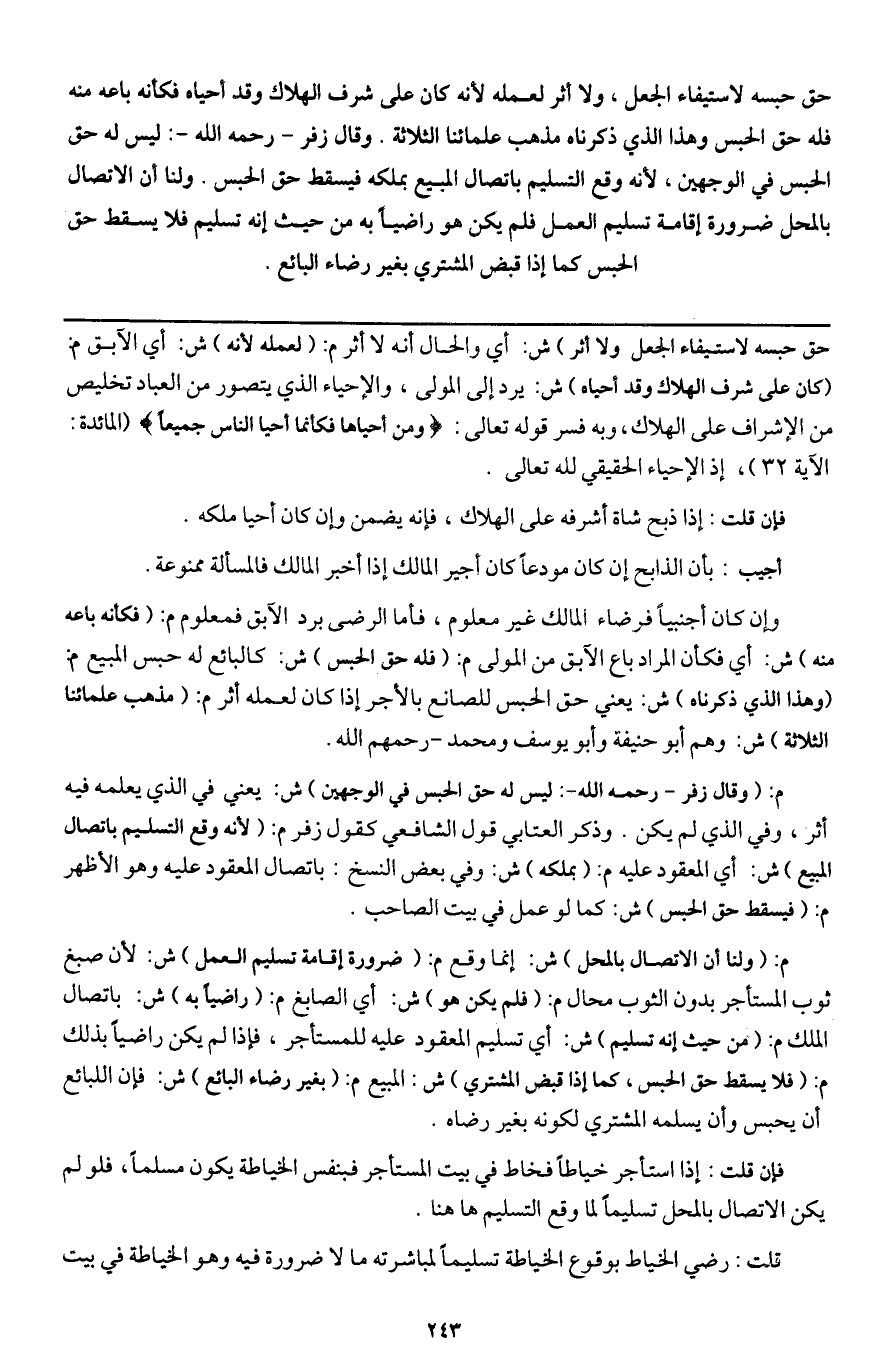 م: (وقال زفر - رَحِمَهُ اللَّهُ -: ليس له حق الحبس في الوجهين) ش: يعني في الذي يعلمه فيه أثر، وفي الذي لم يكن. وذكر العتابي قول الشافعي كقول زفر م: (لأنه وقع التسليم باتصال المبيع) ش: أي المعقود عليه م: (بملكه) ش: وفي بعض النسخ: باتصال المعقود عليه وهو الأظهر م: (فيسقط حق الحبسِ) ش: كما لو عمل في بيت الصاحب.