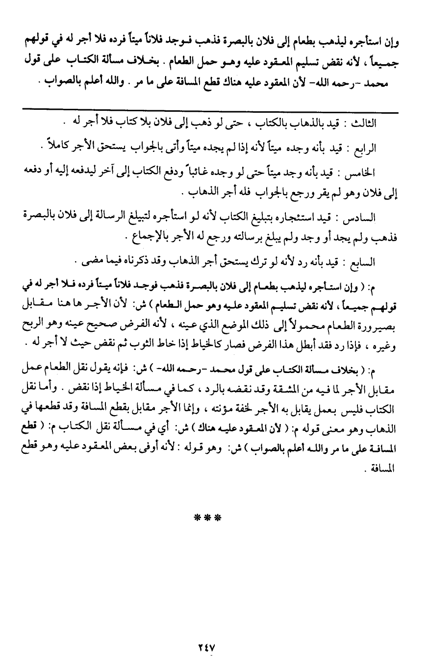 ـــــــــــــــــــــــــــــQالثالث: قيد بالذهاب بالكتاب، حتى لو ذهب إلى فلان بلا كتاب فلا أجر له.
