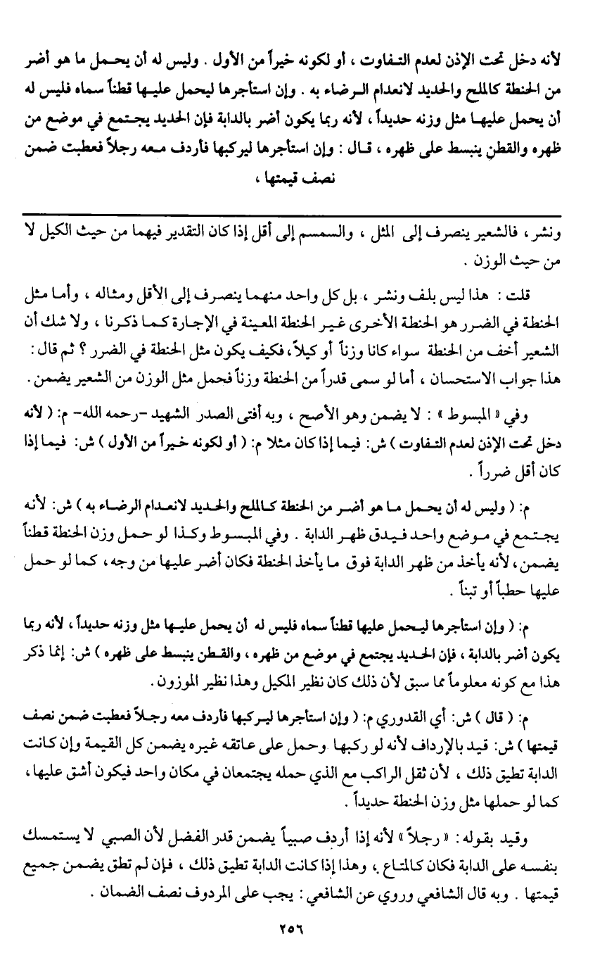 قلت: هذا ليس بلف ونشر، بل كل واحد منهما ينصرف إلى الأقل ومثاله، وأما مثل الحنطة في الضرر هو الحنطة الأخرى غير الحنطة المعينة في الإجارة كما ذكرنا، ولا شك أن الشعير أخف من الحنطة سواء كانا وزنا أو كيلا، فكيف يكون مثل الحنطة في الضرر؟ ثم قال: هذا جواب الاستحسان، أما لو سمى قدرا من الحنطة وزنا فحمل مثل الوزن من الشعير يضمن.