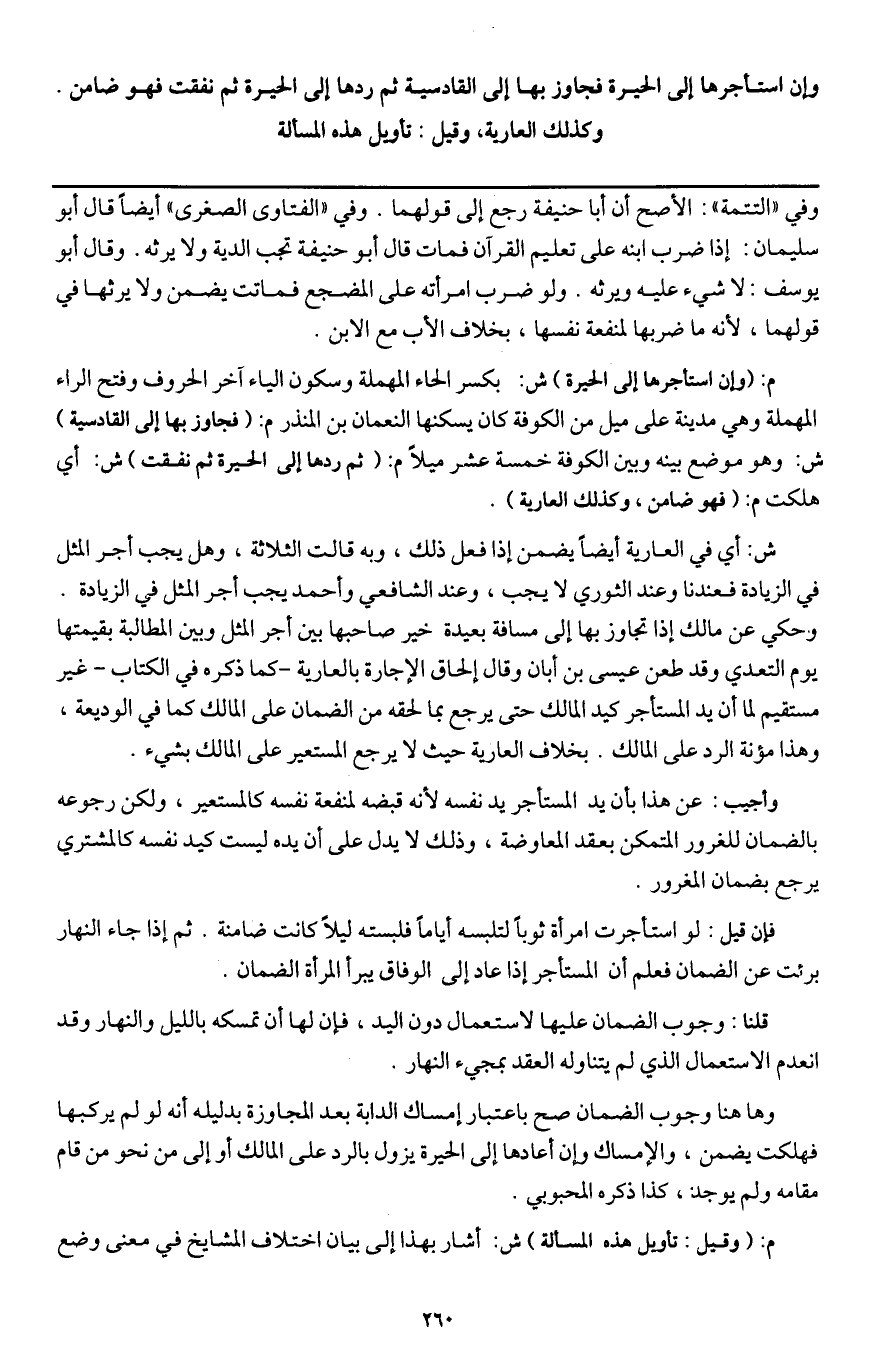وإن استأجرها إلى الحيرة فجاوز بها إلى القادسية، ثم ردها إلى الحيرة، ثم نفقت فهو ضامن. وكذلك العارية، وقيل: تأويل هذه المسألة
