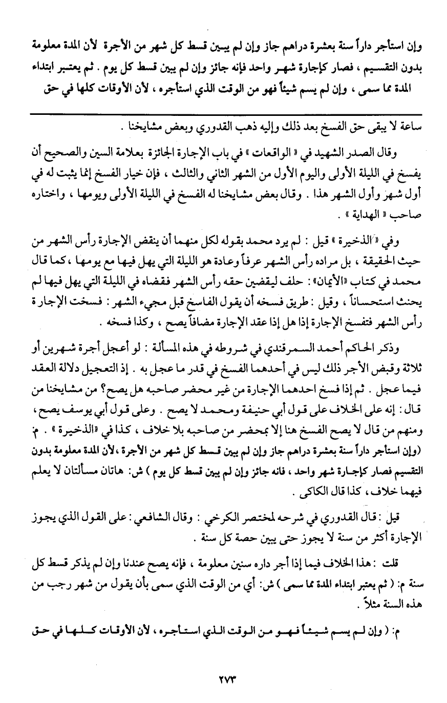 وفي " الذخيرة " قيل: لم يرد محمد بقوله لكل منهما أن ينقض الإجارة رأس الشهر من حيث الحقيقة، بل مراده رأس الشهر عرفا وعادة هو الليلة التي يهل فيها مع يومها، كما قال محمد في كتاب " الأيمان ": حلف ليقضين حقه رأس الشهر فقضاه في الليلة التي يهل فيها لم يحنث استحسانا، وقيل: طريق فسخه أن يقول الفاسخ قبل مجيء الشهر: فسخت الإجارة رأس الشهر فتفسخ الإجارة إذا هل، إذا عقد الإجارة مضافا يصح، وكذا فسخه.