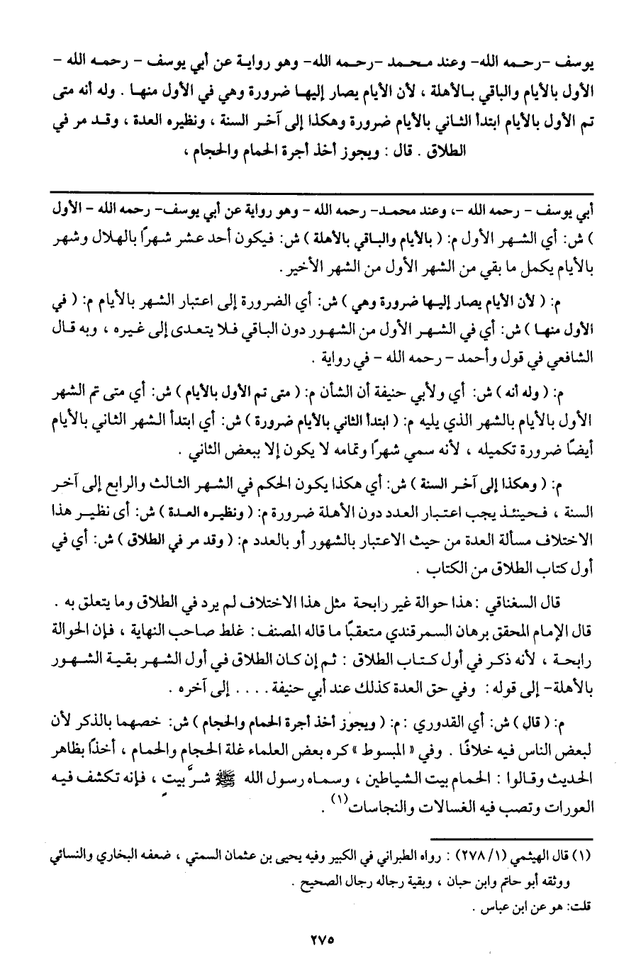 قال السغناقي: هذا حوالة غير رابحة مثل هذا الاختلاف لم يرد في الطلاق وما يتعلق به. قال الإمام المحقق برهان السمرقندي متعقبا ما قاله المصنف: غلط صاحب النهاية، فإن الحوالة رابحة، لأنه ذكر في أول كتاب الطلاق: ثم إن كان الطلاق في أول الشهر بقية الشهور بالأهلة - إلى قوله: وفي حق العدة كذلك عند أبي حنيفة.... إلى آخره.