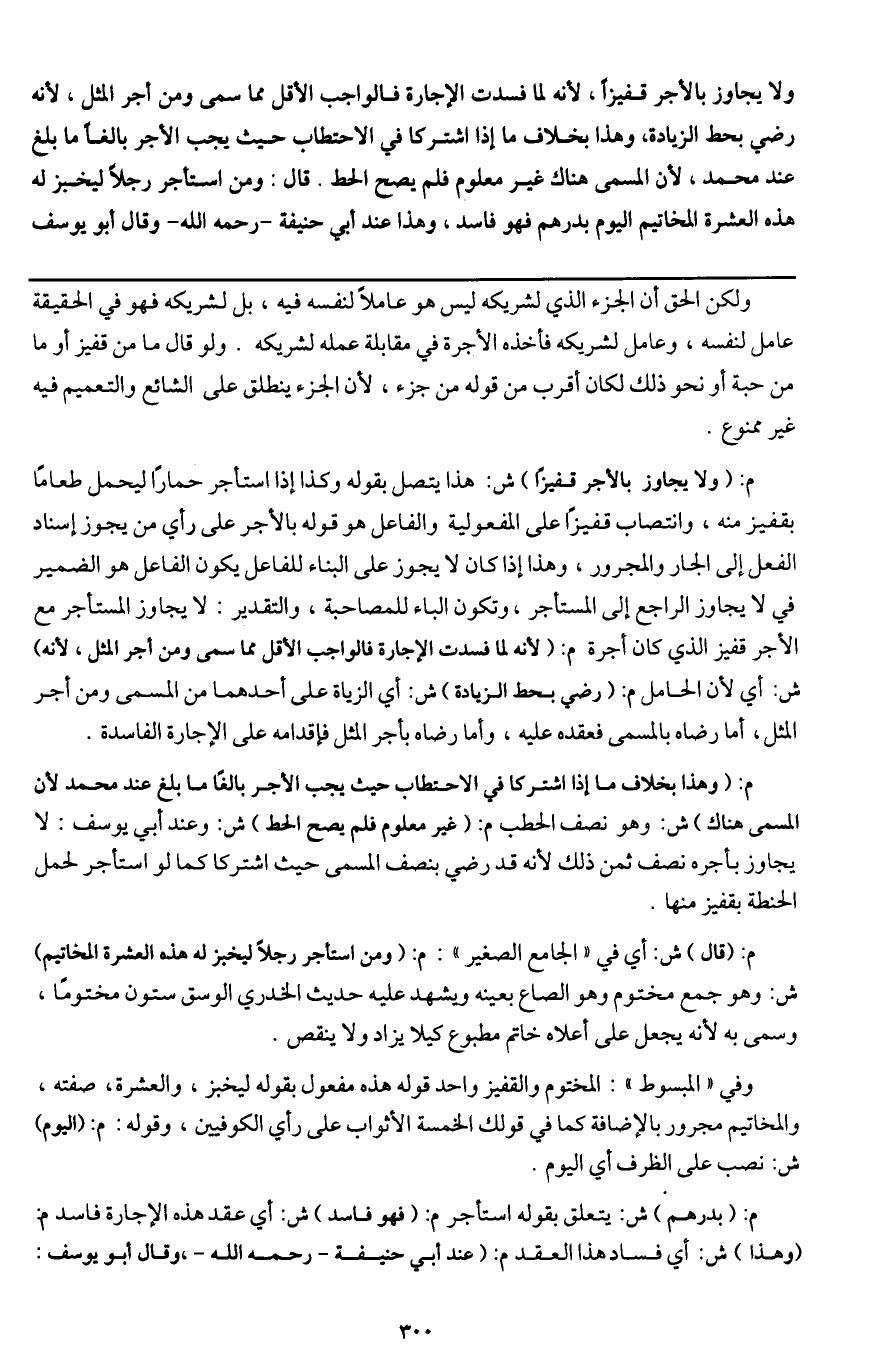 ـــــــــــــــــــــــــــــQولكن الحق أن الجزء الذي لشريكه ليس هو عاملا لنفسه فيه، بل لشريكه فهو في الحقيقة عامل لنفسه، وعامل لشريكه فأخذه الأجرة في مقابلة عمله لشريكه. ولو قال ما من قفيز أو ما من حبة أو نحو ذلك لكان أقرب من قوله من جزء، لأن الجزء ينطلق على الشائع والتعميم فيه غير ممنوع.
