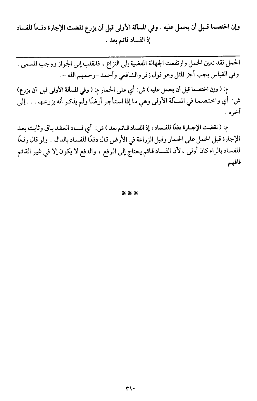 م: (نقضت الإجارة دفعا للفساد، إذ الفساد قائم بعد) ش: أي فساد العقد باق وثابت بعد الإجارة قبل الحمل على الحمار وقبل الزراعة في الأرض قال دفعا للفساد بالدال. ولو قال رفعا للفساد بالراء كان أولى لأن الفساد قائم يحتاج إلى الرفع، والدفع لا يكون إلا في غير القائم فافهم.