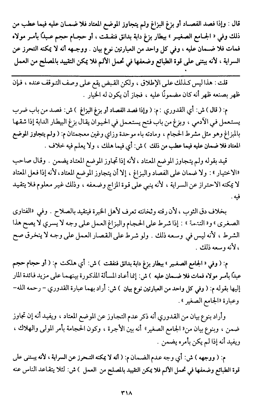 وأراد بنوع بيان من القدوري أنه ذكر عدم التجاوز عن الموضع المعتاد، ويفيد أنه إن تجاوز ضمن، وبنوع بيان من " الجامع الصغير " أنه بين الأجرة، وكون الحجامة بأمر المولى والهلاك، ويفيد أنه إذا لم يكن بأمره يضمن.