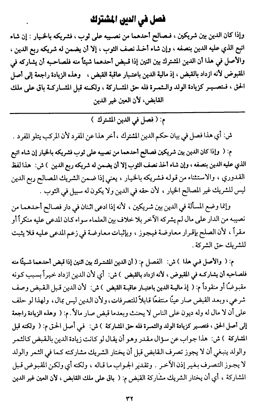 ش: أي هذا فصل في بيان حكم الدين المشترك، أخر هذا عن المفرد لأن المركب يتلو المفرد.