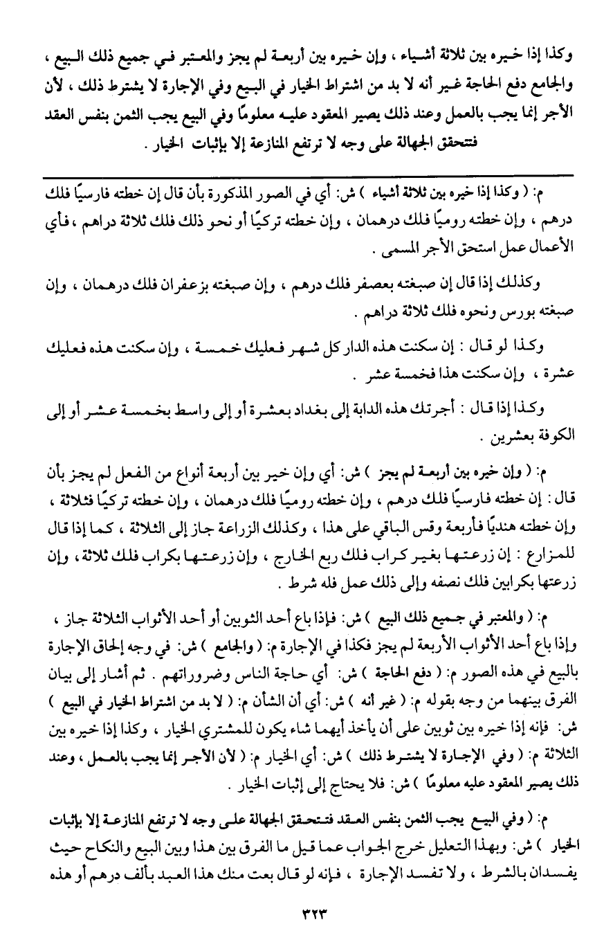 ـــــــــــــــــــــــــــــQم: (وكذا إذا خيره بين ثلاثة أشياء) ش: أي في الصور المذكورة بأن قال إن خطته فارسيا فلك درهم، إن خطته روميا فلك درهمان، وإن خطته تركيا أو نحو ذلك فلك ثلاثة دراهم، فأي الأعمال عمل استحق الأجر المسمى.