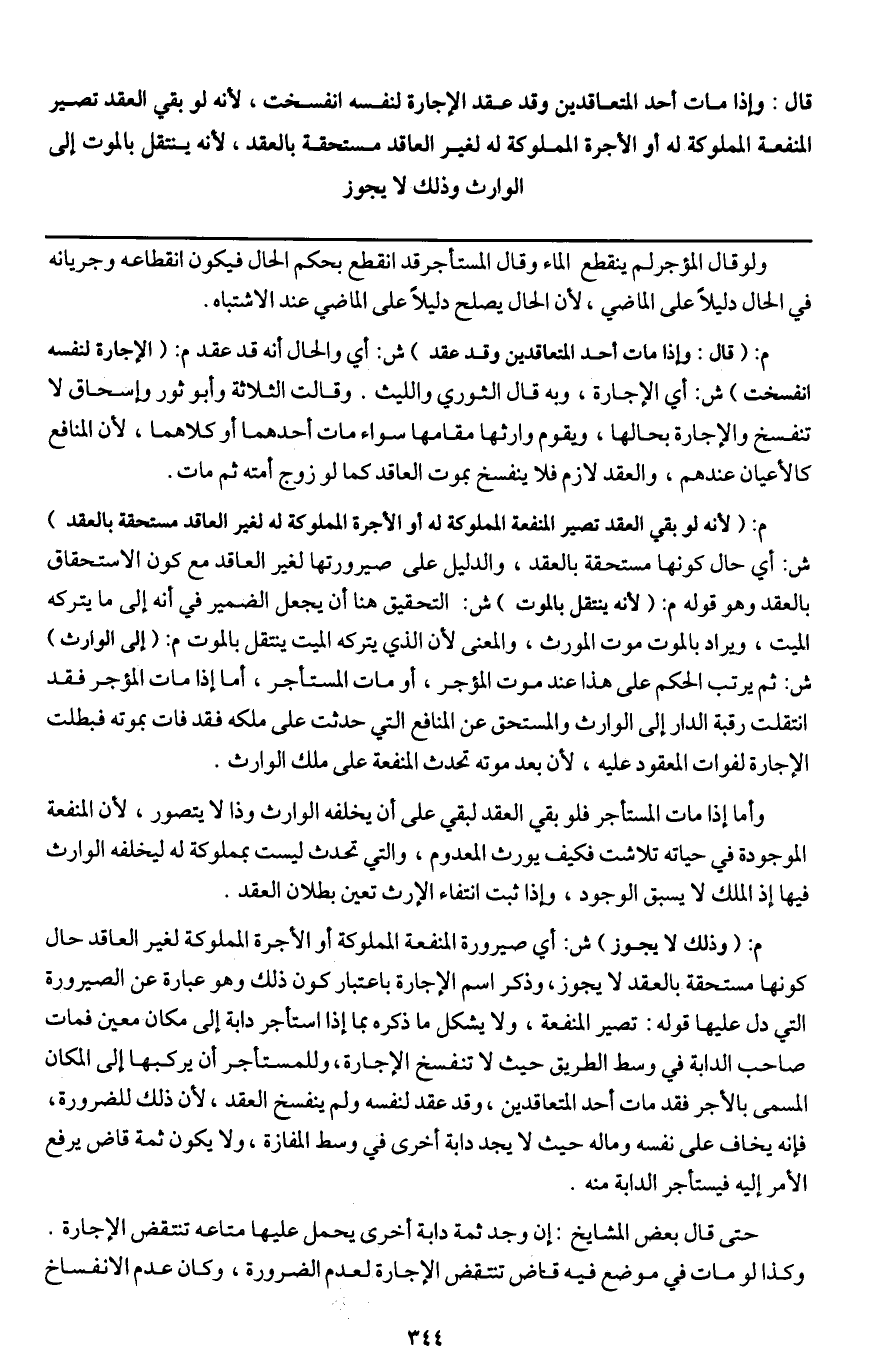 واما إذا مات المستأجر فلو بقي العقد لبقي على أن يخلفه الوارث وذا لا يتصور، لأن المنفعة الموجودة في حياته تلاشت فكيف يورث المعدوم، والتي تحدث ليست بمملوكة له ليخلفه الوارث فيها إذ الملك لا يسبق الوجود، وإذا ثبت انتفاء الإرث تعين بطلان العقد.