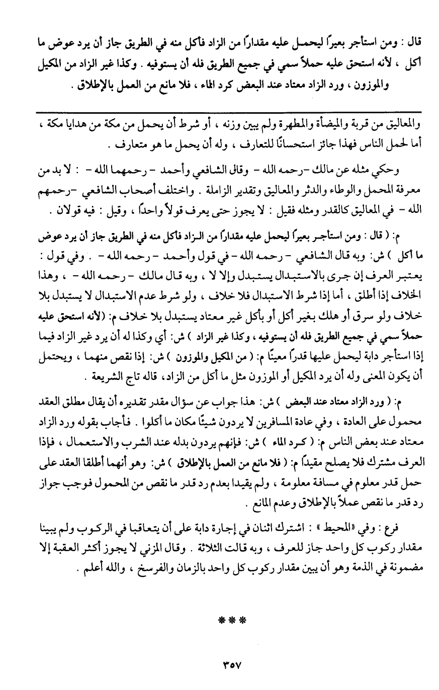 وحكي مثله عن مالك - رَحِمَهُ اللَّهُ - وقال الشافعي وأحمد - رحمهما الله -: لا بد من معرفة المحمل والوطاء والدثر والمعاليق وتقدير الزاملة. واختلف أصحاب الشافعي - رَحِمَهُمُ اللَّهُ - في المعاليق كالقدر ومثله فقيل: لا يجوز حتى يعرف قولا واحدا، وقيل فيه قولان.