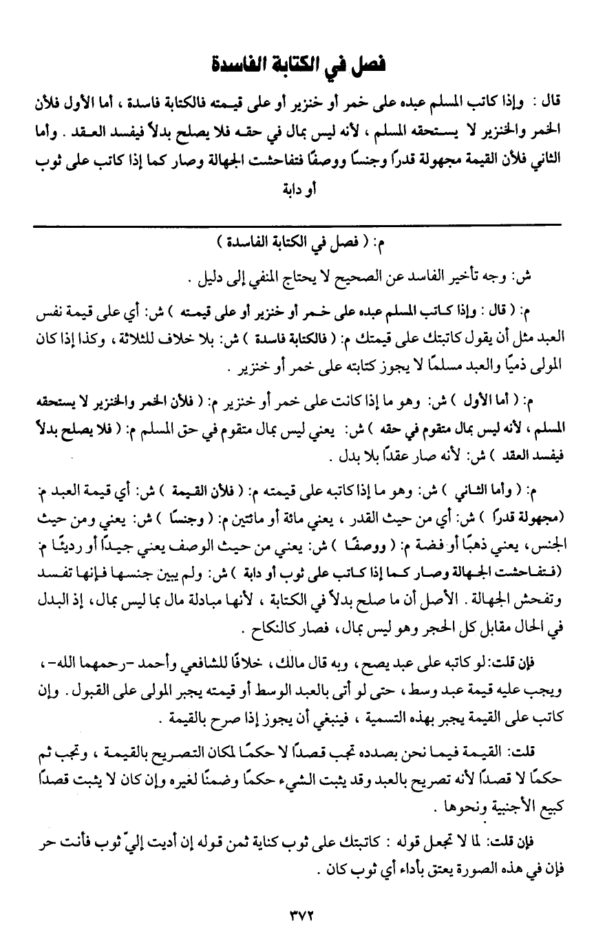 م: (فصل في الكتابة الفاسدة) ش: وجه تأخير الفاسد عن الصحيح لا يحتاج المنفي إلى دليل.