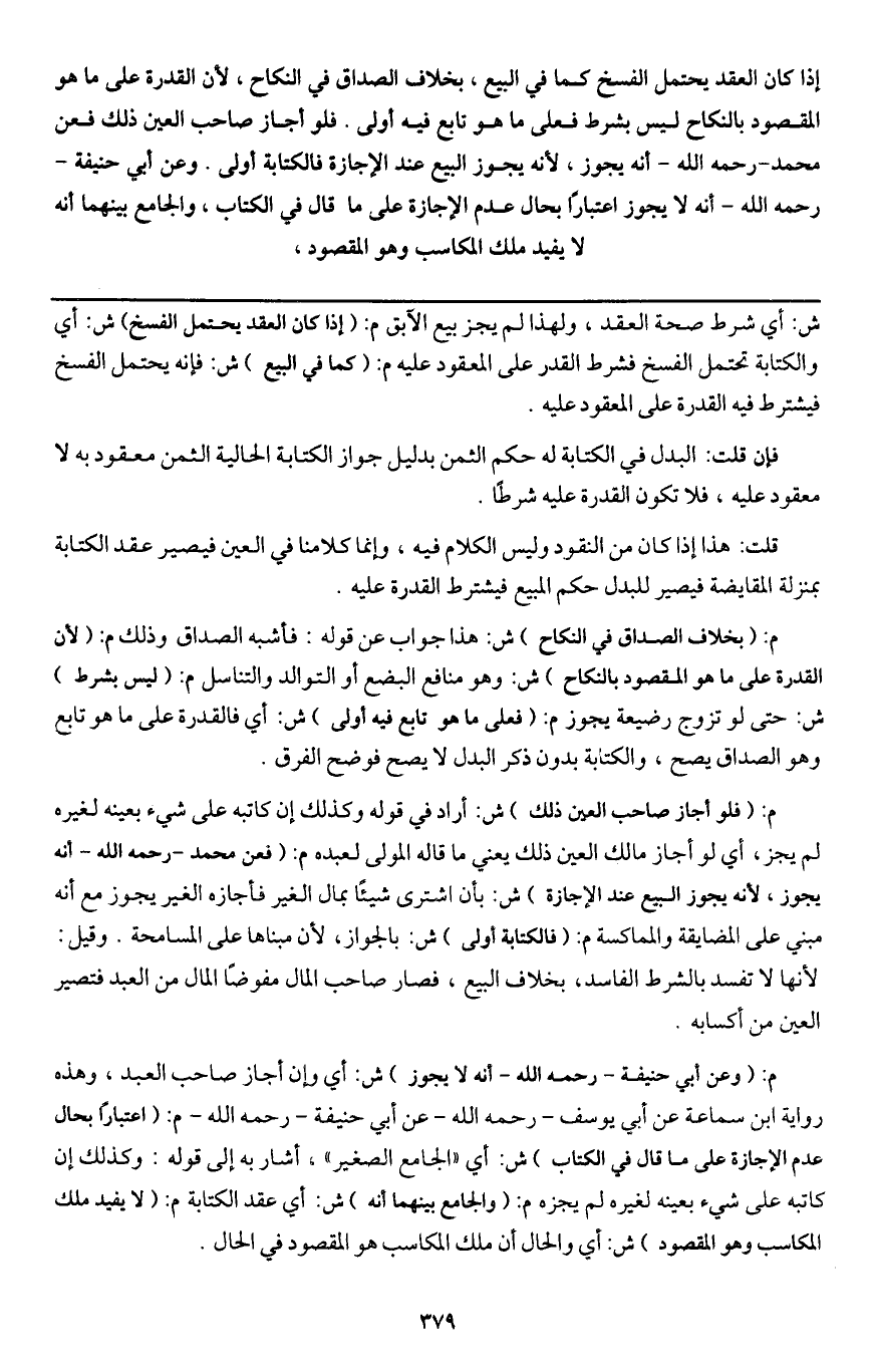 ـــــــــــــــــــــــــــــQش: أي شرط صحة العقد، ولهذا لم يجز بيع الآبق م: (إذا كان العقد يحتمل الفسخ) ش: أي والكتابة تحتمل الفسخ فشرط القدر على المعقود عليه م: (كما في البيع) ش: فإنه يحتمل الفسخ فيشترط فيه القدرة على المعقود عليه.