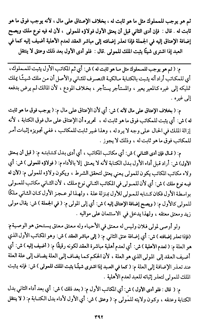 ـــــــــــــــــــــــــــــQم: (ثم هو يوجب للمملوك مثل ما هو ثابت له) ش: أي ثم المكاتب الأول يثبت للمملوك، أي للمكاتب أراد أنه يثبت بالكتابة مالكية التصرف للثاني والأصل أن من ملك شيئا يملك تمليكه إلى غيره كالمعير يعير، والمستأجر يستأجر، بخلاف المودع، لأن المالك لم يرض بدفعه إلى غيره.