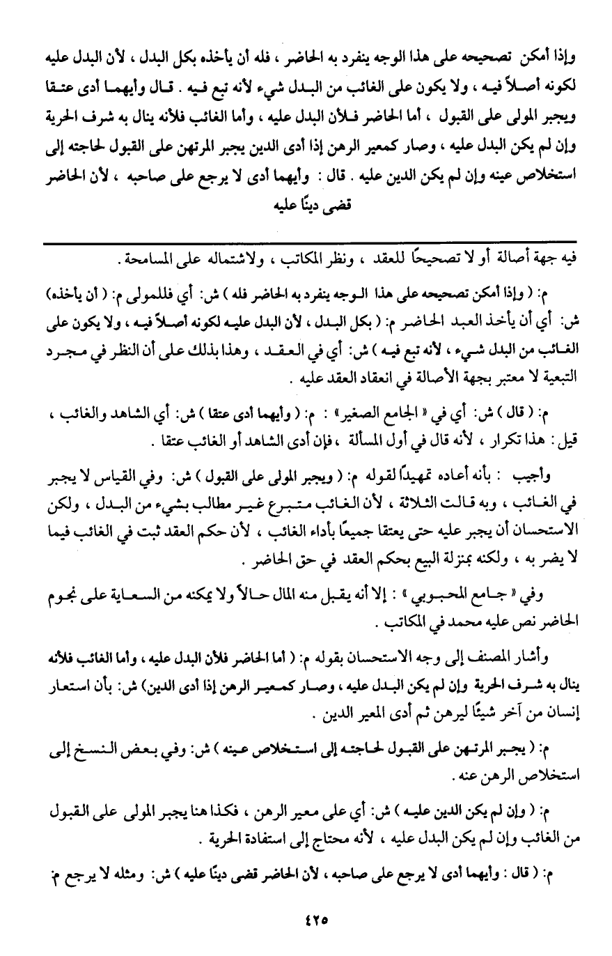 ـــــــــــــــــــــــــــــQفيه جهة أصالة أو لا تصحيحا للعقد، ونظر المكاتب، ولاشتماله على المسامحة.