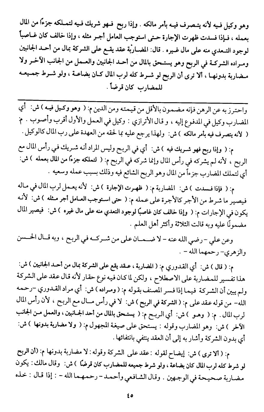 ـــــــــــــــــــــــــــــQواحترز به عن الرهن فإنه مضمون بالأقل من قيمته ومن الدين م: (وهو وكيل فيه) ش: أي المضارب وكيل في المدفوع إليه، وقال الأترازي: وكيل في العمل والأول أقرب وأصوب. م: (لأنه يتصرف فيه بأمر مالكه) ش: ولهذا يرجع عليه بما لحقه من العهدة على رب المال كالوكيل.