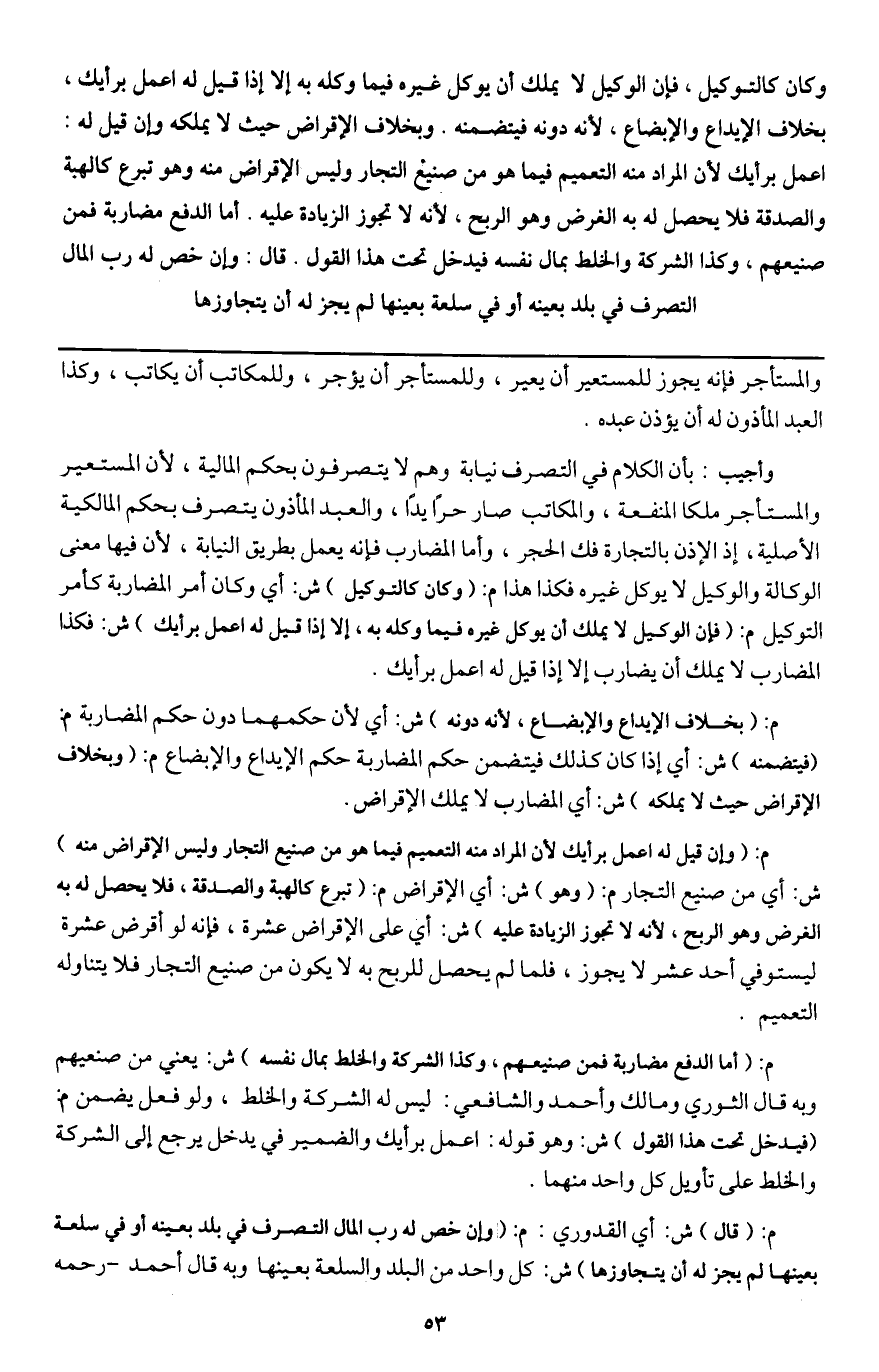 وكان كالتوكيل، فإن الوكيل لا يملك أن يوكل غيره فيما وكله به إلا إذا قيل له اعمل برأيك، بخلاف الإيداع والإبضاع؛ لأنه دونه فيتضمنه. وبخلاف الإقراض حيث لا يملكه وإن قيل له: اعمل برأيك لأن المراد منه التعميم فيما هو من صنيع التجار وليس الإقراض منه وهو تبرع كالهبة والصدقة فلا يحصل له به الغرض وهو الربح؛ لأنه لا تجوز الزيادة عليه. أما الدفع مضاربة فمن صنيعهم، وكذا الشركة والخلط بمال نفسه فيدخل تحت هذا القول.