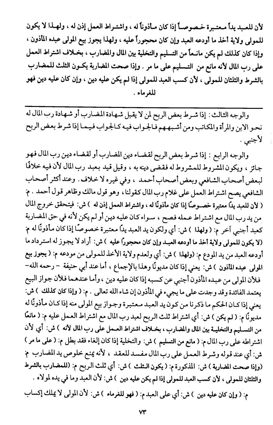 ـــــــــــــــــــــــــــــQوالوجه الثالث: إذا شرط بعض الربح لمن لا يقبل شهادة المضارب أو شهادة رب المال له نحو الابن والمرأة والمكاتب ومن أشبههم فالجواب فيه كالجواب فيما إذا شرط بعض الربح لأجنبي.