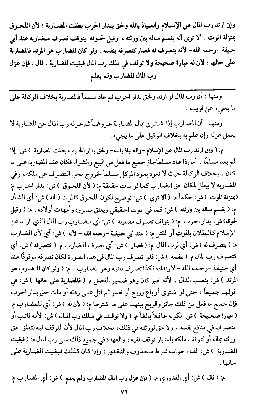 ـــــــــــــــــــــــــــــQومنها: أن رب المال لو ارتد ولحق بدار الحرب ثم عاد مسلما فالمضاربة بخلاف الوكالة على ما يجيء عن قريب.