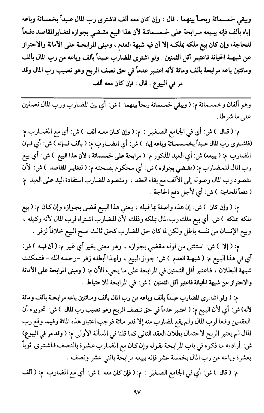 ـــــــــــــــــــــــــــــQوهو ألفان وخمسمائة م: (ويبقى خمسمائة ربحًا بينهما) ش: أي بين المضارب ورب المال نصفين على ما شرطا.