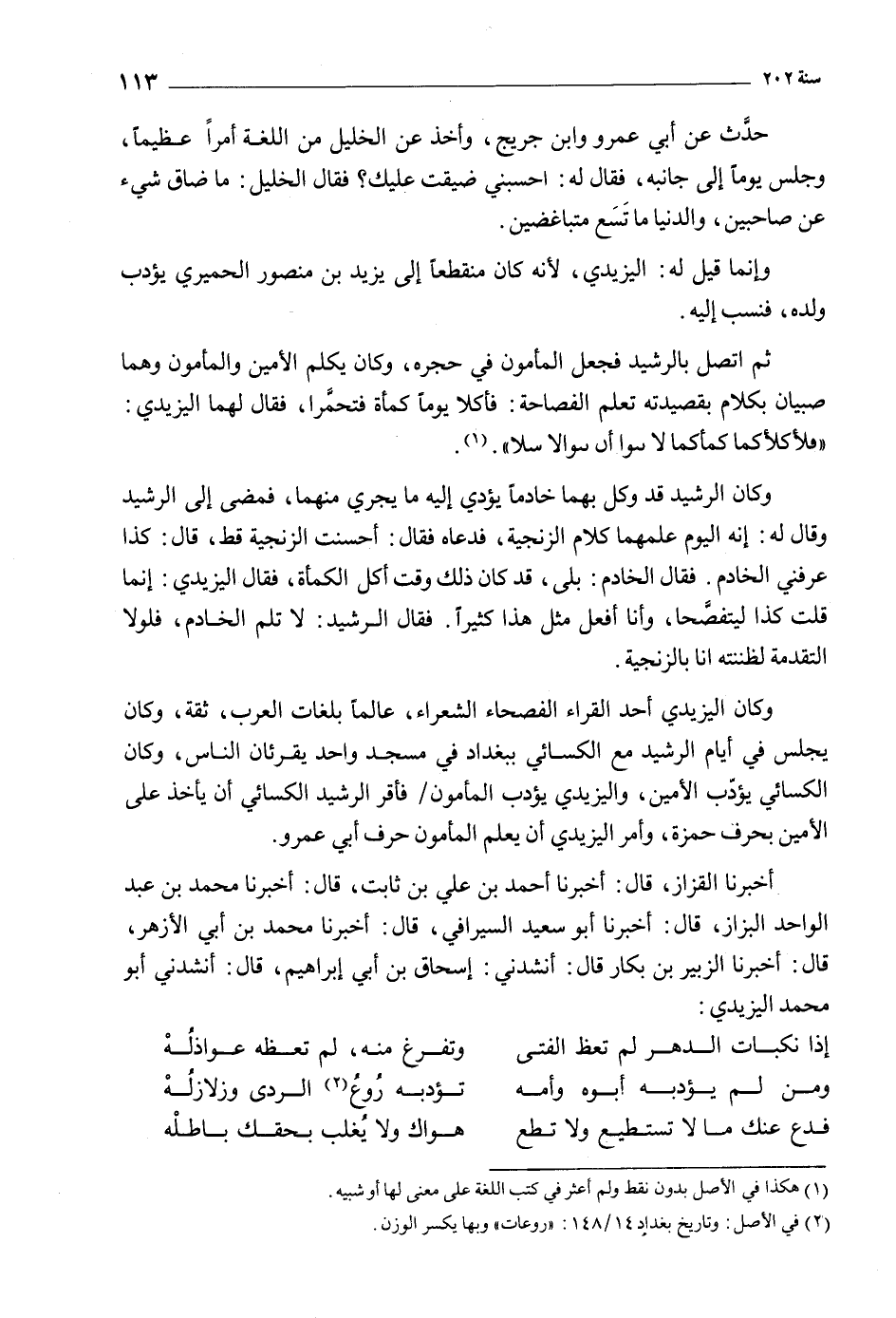 [2] في الأصل: وتاريخ بغداد 14/ 148: «روعات» وبها يكسر الوزن.