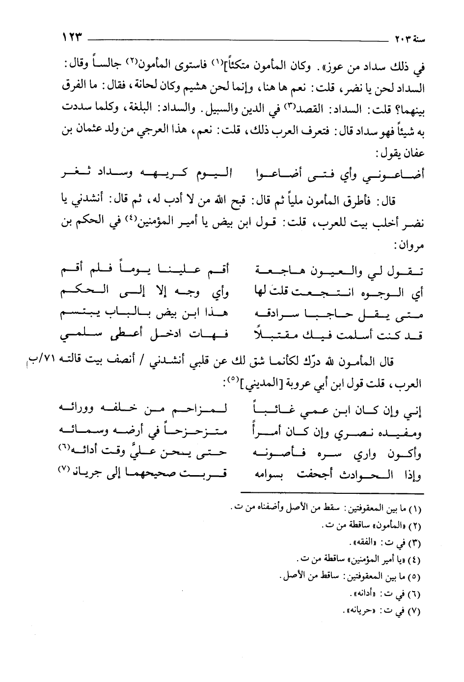 فِي ذَلِكَ سَدَادٌ مِنْ عِوَزٍ» . وكان المأمون متكئا] [1] فاستوى المأمون [2] جالسا وقَالَ: