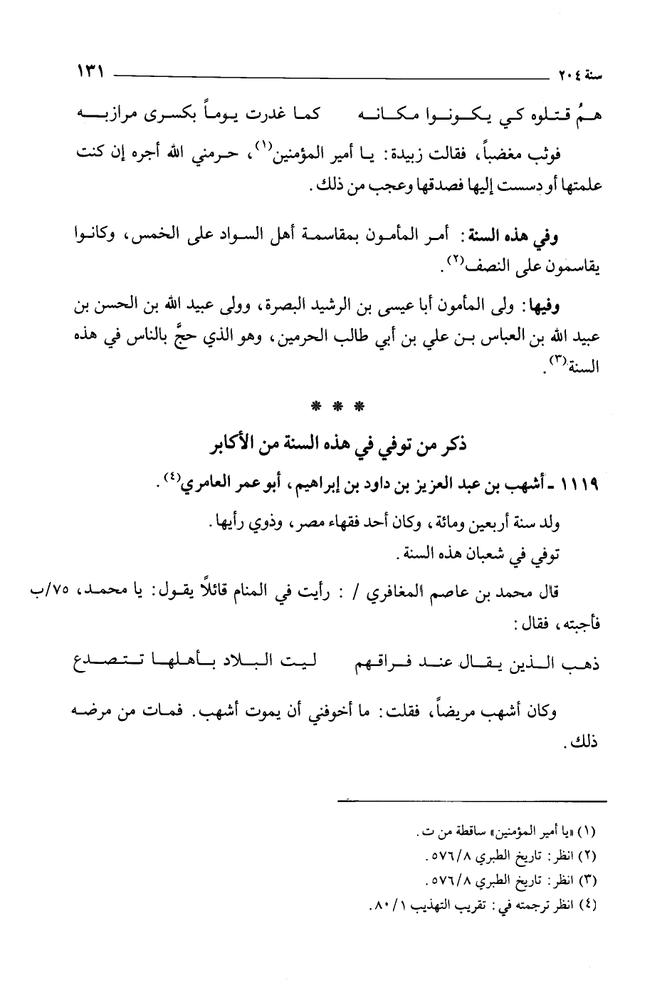 وفي هذه السنة: أمر المأمون بمقاسمة أهل السواد على الخمس، وكانوا يقاسمون عَلَى النصف [2] .