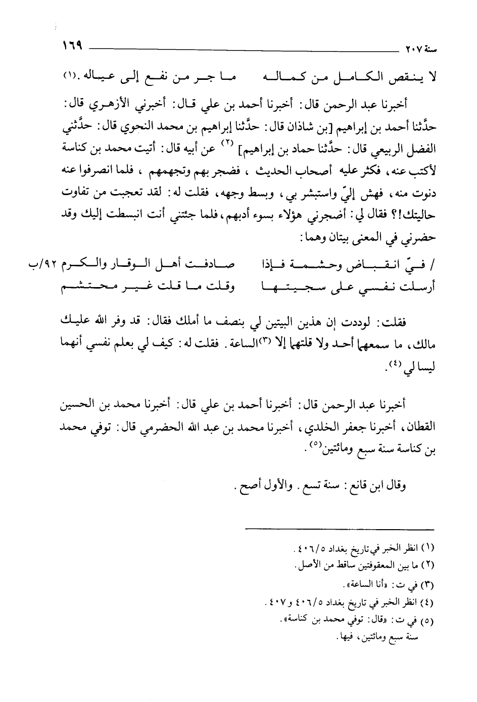 [4] انظر الخبر في تاريخ بغداد 5/ 406 و 407.