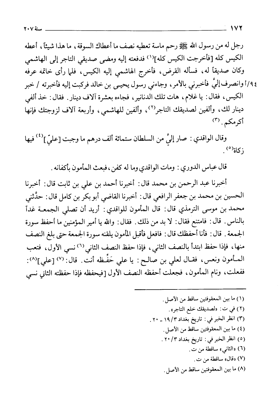 [5] انظر الخبر في: تاريخ بغداد 3/ 20.