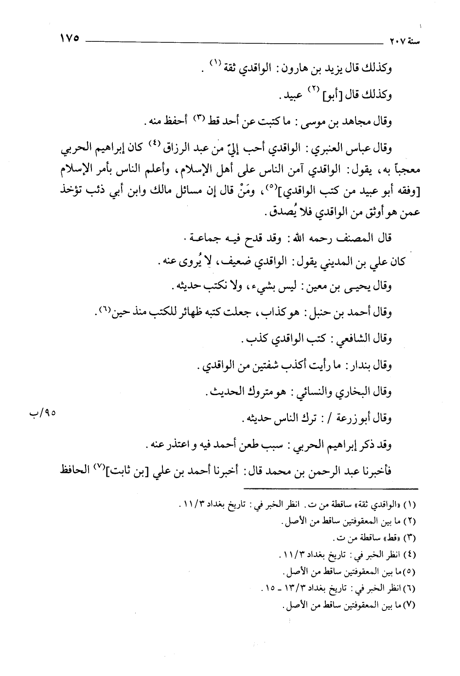 [1] «الواقدي ثقة» ساقطة من ت. انظر الخبر في: تاريخ بغداد 3/ 11.
