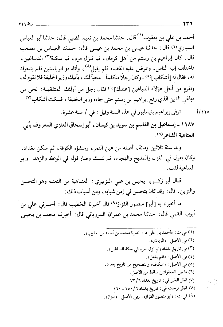 [7] انظر الخبر في: تاريخ بغداد 6/ 73.