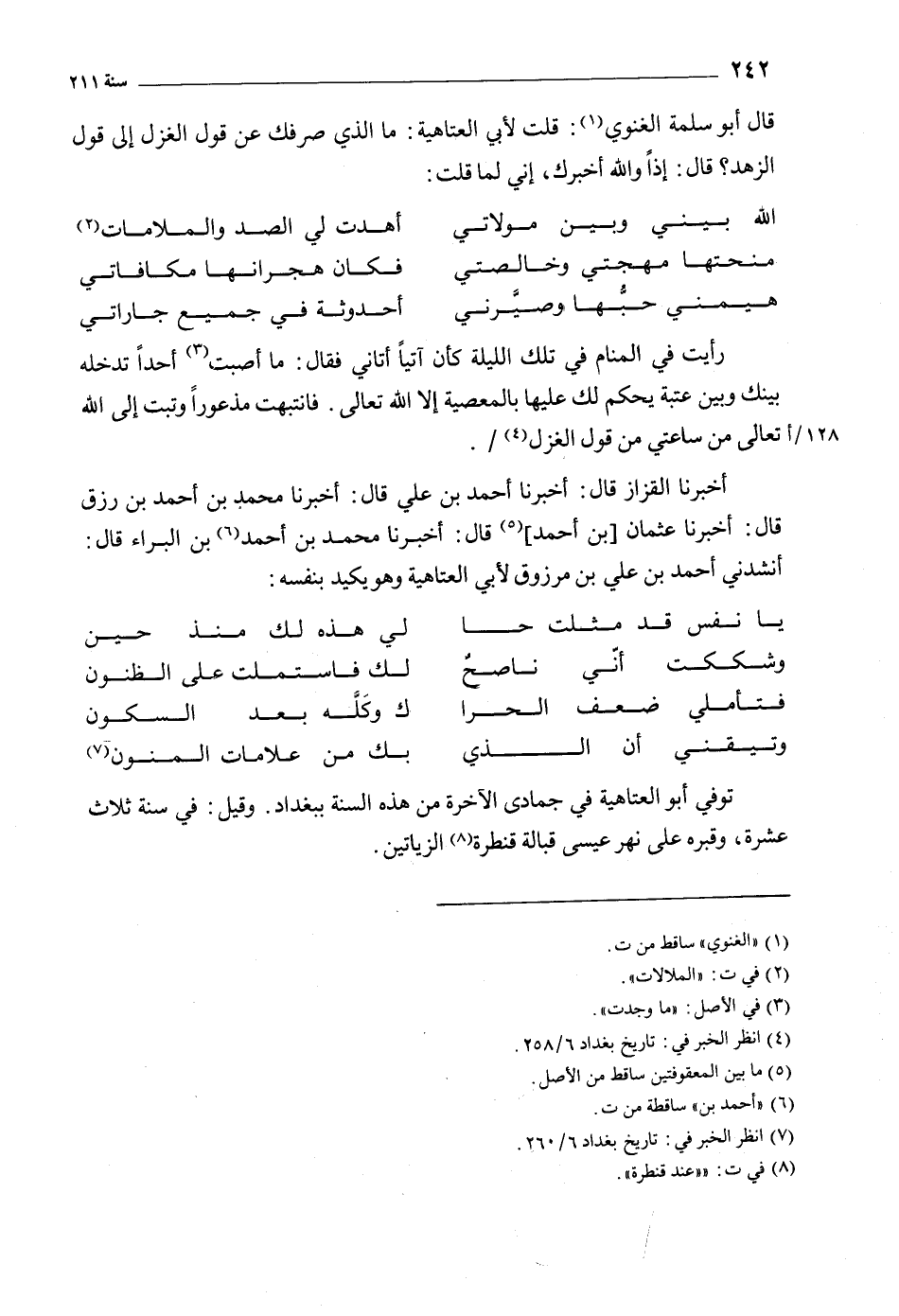 [7] انظر الخبر في: تاريخ بغداد 6/ 260.