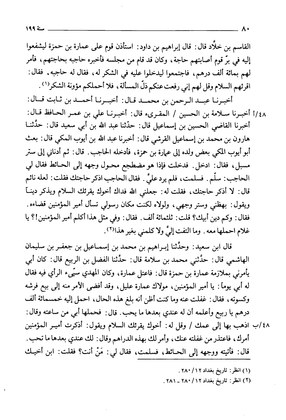 [2] انظر: تاريخ بغداد 12/ 280- 281.