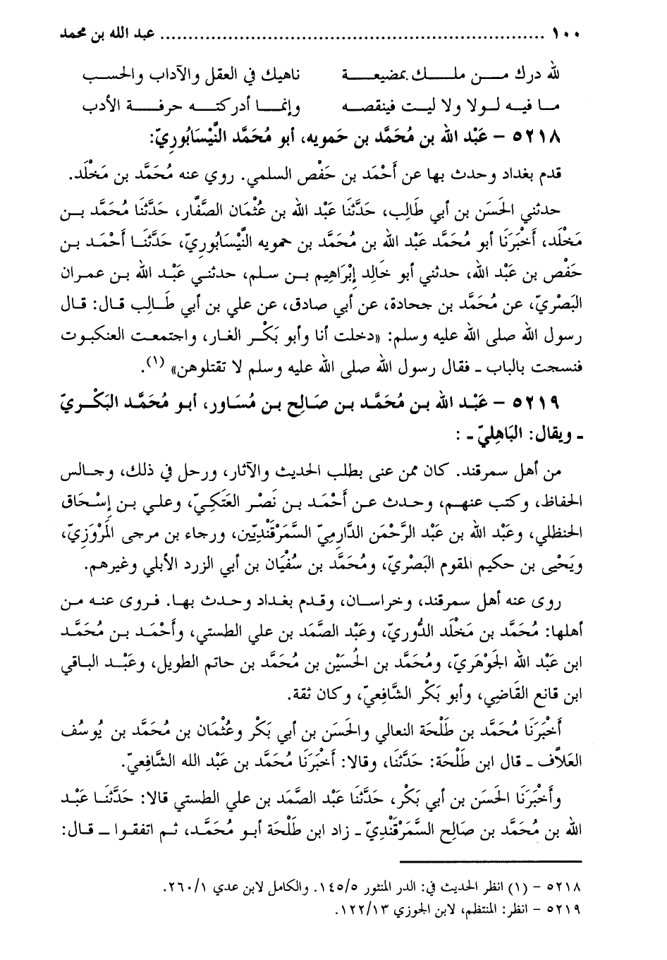 5218 عبد اللَّه بن مُحَمَّد بن حمويه، أبو مُحَمَّد النيسابوري: