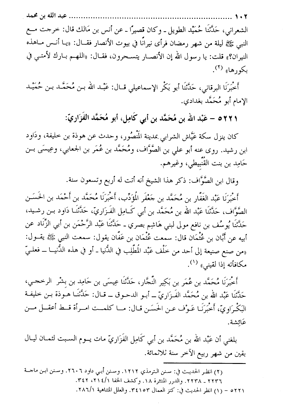 5221 عبد الله بن محمد بن أبي كامل، أبو مُحَمَّد الفزاري: