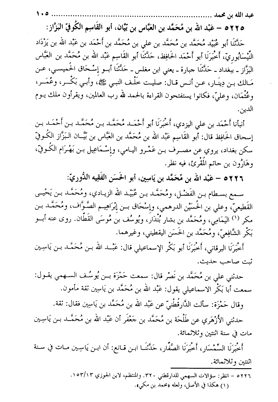 [1] 5226 انظر: سؤالات السهمي للدارقطني 320. والمنتظم، لابن الجوزي 13/153.