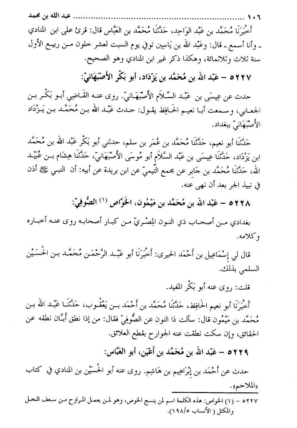 5227 عبد اللَّه بن مُحَمَّد بن يزداد، أبو بكر الأصبهاني: