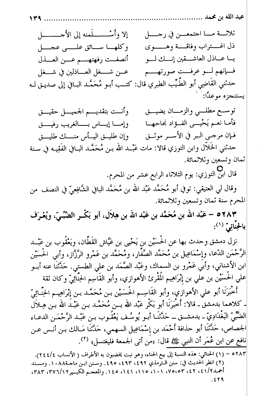 5283 عَبْد اللَّه بْن مُحَمَّد بْن عَبْد اللَّه بن هلال، أبو بكر الضبي، ويعرف بالحنائي [1] :
