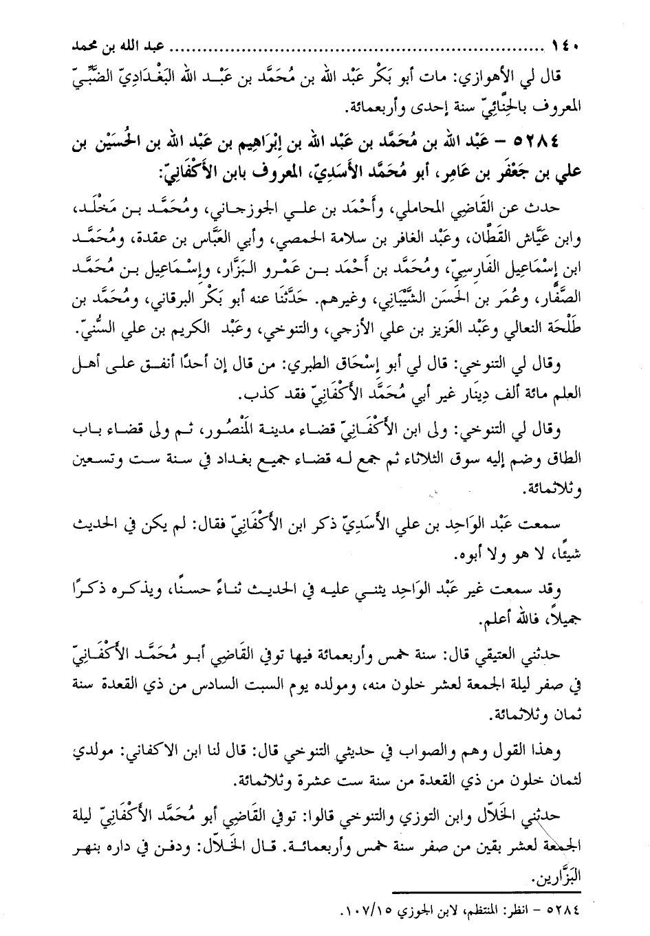[1] 5284 انظر: المنتظم، لابن الجوزي 15/107.