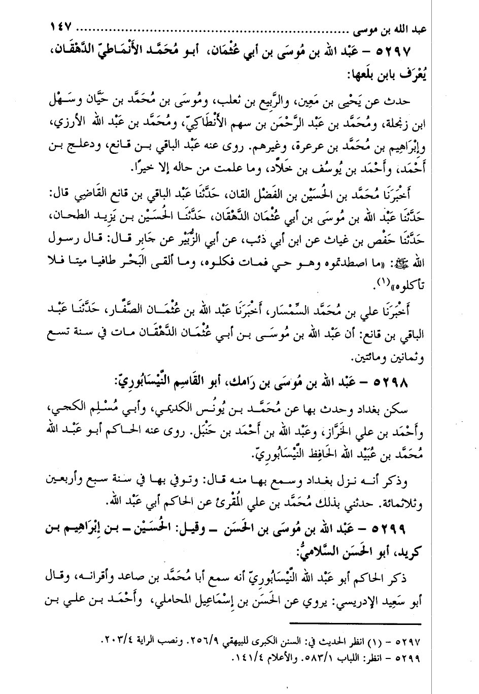 5297 عَبْد اللَّهِ بْن مُوسَى بْن أَبِي عُثْمَان، أَبُو مُحَمَّد الأنماطي الدهقان، يعرف بابن بَلَعها: