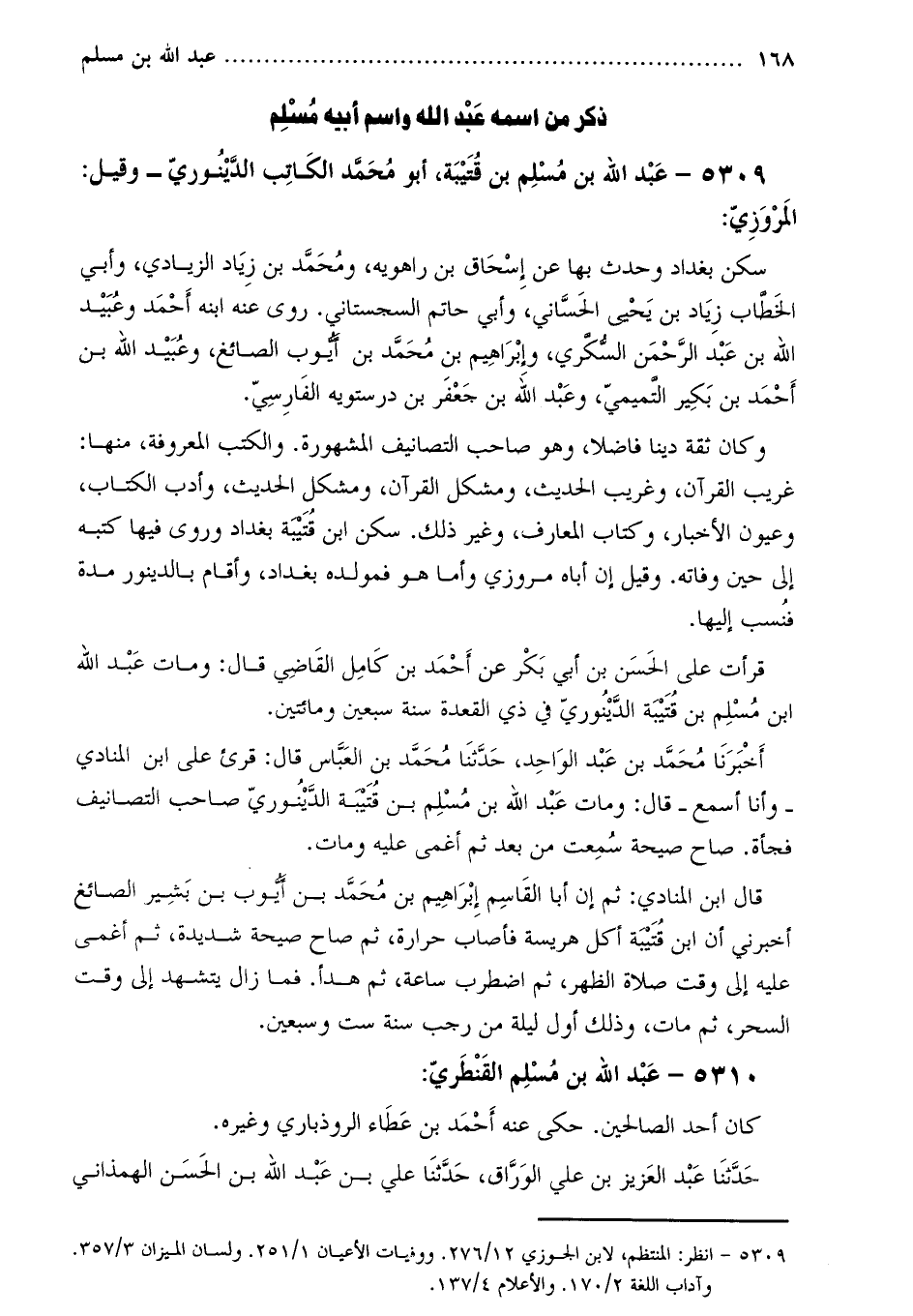 5309 عَبْد اللَّه بْن مُسْلِم بْن قتيبة، أَبُو مُحَمَّد الكاتب الدينوري- وقيل: الْمَرْوَزِيّ [1] :