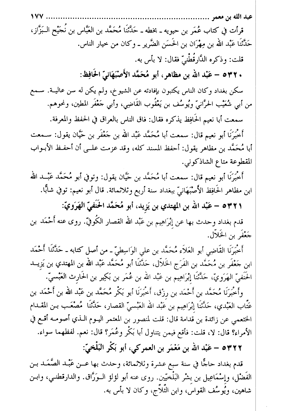 5320 عبد اللَّه بن مظاهر، أبو مُحَمَّد الأصبهاني الحافظ:
