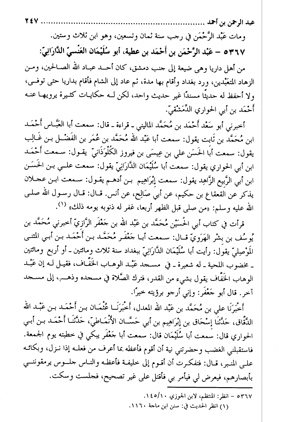 [1] 5367 انظر: المنتظم، لابن الجوزي 10/145.